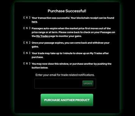 如果您想查看已申购的 Passage 产品,您可以点击页面最上方“My Trade”来查看您所申购的产品列表。